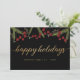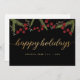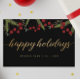 Black & Gold Red berries Happy Holidays Logo Holiday Card