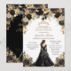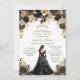 Black Gold Rose Floral Princess Dress Quinceañera Invitation
