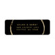 This return address label features a faux gold circle frame and simple calligraphy with a black background.