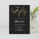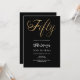 A modern, stylish invitation for a 50th birthday party for both him and her. Black background and the word Fifty written with large faux gold letters. Personalise and add a name and party details.