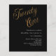 A modern, stylish invitation for a 21st birthday party. Classic black background and the word Twenty One written with elegant large script letters in faux gold. Personalise and add a name and party details.