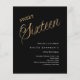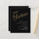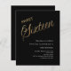 A modern Sweet 16 invitation. Classic black background and the word Sixteen written with large letters in faux gold. Personalise and add a name and party details. White text.