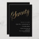 A modern, stylish invitation for a 70th birthday party for both him and her. Black background and the word Sixty written with large faux gold letters. Personalise and add a name and party details.