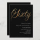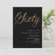 A modern, stylish invitation for a 60th birthday party for both him and her. Black background and the word Sixty written with large faux gold letters. Personalise and add a name and party details.