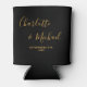 Add some elegance and charm to your wedding with these personalised Black Gold Script Minimalist Wedding Can Coolers.