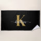 This simple, elegant black beach towel with your first name in a trendy script font in white and your first initial in a modern cap font in gold is perfect for you. It's stylish and trendy and yet very classic. Get a bunch for the beach or for your pool and deck area. They'll come in so handy.