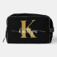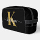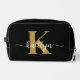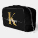 This simple, elegant black toiletry bag with your first name in a trendy script font in white and your first initial in a modern cap font in gold is perfect for you. It's stylish and trendy and yet very classic. It will be fabulous for school, the gym, work, your car - will make keeping your makeup or toiletries all in one place when you're away from home.