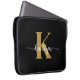 This simple, elegant 15" black laptop sleeve with your first name in a trendy script font in white and your first initial in a modern cap font in gold is perfect for you. It's stylish and trendy and yet very classic. It's unique - like you!