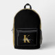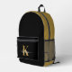 This simple, elegant black backpack with your first name in a trendy script font in white and your first initial in a modern cap font in gold is perfect for you. It's stylish and trendy and yet very classic. It will be fabulous for school, the gym, outings, hikes, shopping, biking, etc.