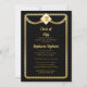 A gold graduation cap and rounded serpentine frame gold tone and black graduation party invitation design that can be personalised for high school, college, university or vocational school graduations. Composite design by Holiday Hearts Designs (rights reserved).