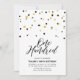 Celebrate your special day with this minimal 100th birthday party invitation. This design features a stylish lettering script "One Hundred" with hexagon-shaped confetti with a black & gold colour combo. More designs available at my shop BaraBomDesign.