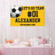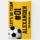 Cheer on your team with this Black Gold Soccer Team Banner. Personalise with your athlete's number and name, and the name of the team. You can even change the message. Show off your team spirit this summer.
