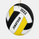This sporty volleyball Christmas ornament features a black, gold and white volleyball with customisable name and year - by katz_d_zynes