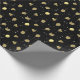 Black white and gold star, balloon, and birthday pattern wrapping paper.