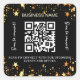 A stylish, classic black background. Decorated with faux gold stars. Personalise and add your business name, your own qr code to your website and a text. White text. With the text x2: Scan to connect!
