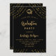 A black background decorated with faux gold stars and a cap. Personalise and add a name and party details. The text Graduation and the name are written with modern hand lettered style script.