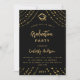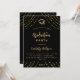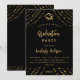 A black background decorated with faux gold stars and a cap. Personalise and add a name, party details and year. The text Graduation and the name are written with modern hand lettered style script.