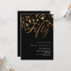 A modern, stylish invitation for a 50th birthday party for both him and her. Decorated with golden stars. Black background and the word Fifty written with large faux gold letters. Personalise and add a name and party details.