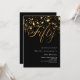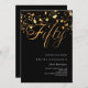 A modern, stylish invitation for a 50th birthday party for both him and her. Decorated with golden stars. Black background and the word Fifty written with large faux gold letters. Personalise and add a name and party details.