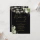 This elegant black and gold wedding invitation, featuring pretty string lights and floral greenery, can be personalised with your information in chic typography with your wedding website details and your QR code on the reverse. Designed by Thisisnotme©