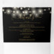 All in one black and gold tri-fold wedding invitation featuring pretty string lights and elegant typography. The invitation includes your celebration guest information details and a detachable RSVP card. Designed by Thisisnotme©