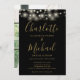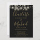 Featuring pretty string lights and signature style names, this elegant wedding invitation can be personalized with your wedding day details in chic gold lettering on a black background with your chosen photo on the reverse. Designed by Thisisnotme©