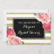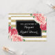 Personalised bridal shower invitations in black and white with gold stripes and pink watercolor flowers, please note gold is photographic effect only.