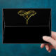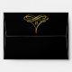 This is your basic black invitation envelope with a solid white interior. The back flap has an added attraction, a distinguished and dramatic gold ornate swirl with your monogram at the centre. This formal envelope works well with any 5 x 7 or smaller invitation. To see other sizes available, choose "Customise". You may also use that option to change the outside colour of the envelope from white to a variety of colours.