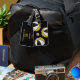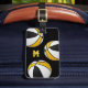 This basketball themed luggage bag tag is simply designed with three randomly arranged basketballs that have alternating recolored black, white and gold panels - personalise with player name and monogram on the front, address information on the back - by katz_d_zynes
