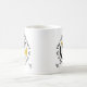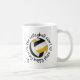 This sporty volleyball team colours coffee mug with monogram features the typographic phrase, "The volleyball court is my happy place" and two heart outlines in black encircling a volleyball with black, gold and white coloured panels - customise with monogram - by katz_d_zynes