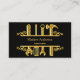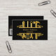 A black background, with a faux gold tools. Personalise and add your business name and a text on front. Golden letters