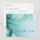 Elegant abstract alcohol ink art decorates this wedding Save the date card with black handwritten font text. This card has an easy-to-edit template where you can add your wedding information. Black Gold Turquoise Wedding Save the Date Announcement Postcard.