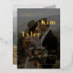Simple typography bold bride and groom names modern minimalist black and gold overlay wedding invitation with 2 custom engagement photos (one on the front and another on the back). ++++++++++++ Suitable for contemporary modern minimalist casual style any season weddings. Matching stationery is available in the collection.