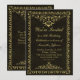 Elegant personalised vintage black and gold party invitations. Great to use for any age birthday, or a milestone such as 50th birthday party invitation. Beautiful and festive elegant antiqued-look birthday invites. Black and Gold aged antique design with golden frames and decorative scrolls to celebrate the guest of honour's big day. Perfect for a formal, semi-formal or dinner party soiree event