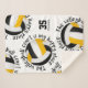 This sporty volleyball themed sherpa fleece blanket features 5 randomly arranged black, gold and white volleyballs with the text, "The volleyball court is my happy place" in gold encircling each volleyball in a fun typographic font, all on a white background - her name and jersey number are customisable - by katz_d_zynes