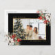 Elegant black and gold photo Christmas postcard featuring a black photo frame adorned with a watercolor painting of poinsettia, holly and red berries. Easily personalize this botanical holiday postcard with your photo and text.