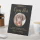 Customise this pet wedding sign with your dog, cat, puppy or kitten favourite photo, name and text. COPYRIGHT © 2020 Judy Burrows, Black Dog Art - All Rights Reserved. Black Gold Wedding Open Bar Custom Pet Dog Photo Pedestal Sign