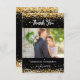 A modern wedding Thank You photo card. A black background decorated with faux gold confetti. Personalise and add your photo and thank you note.