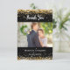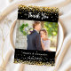A modern wedding Thank You photo card. A black background decorated with faux gold glitter, sparkles. Personalise and add your photo and thank you note.