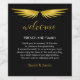 Black Gold Wings Wedding Welcome Wine Label.