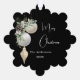 An elegant, modern black background. Decorated with white and gold baubles and some greenery and a pine cone. Personalise and add your name, year. Text: Merry Christmas