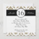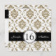 Black, Gold and White Damask Sweet Sixteen Birthday Invitations. Layout Design by Elke Clarke ©2012. Graphics licensed. Customise with your 16th birthday party details and personal information. This sixteen birthday invitation is a fabulous way to announce your daughter's Sweet 16 birthday celebrations.