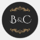 Black, Gold, & White Elegant Wedding Theme Classic Round Sticker