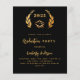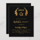 Black background. A classic laurel wreath and a graduation cap. Personalise and add the year, name and details. Golden text.