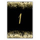 This Elegant Modern Table Number features handwritten text 1 with golden shining confetti on the black background. Enjoy it.