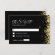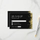 Modern Black Golden Wedding RSVP Card - features glittering drops on the black background with white text .