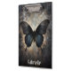 A beautiful black and midnight blue butterfly on a textured grunge background creates a gorgeous Gothic style clipboard. Personalise with your name at the bottom. The back is solid black.