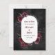 Dark and moody save the date card with Till Death Do Us Part saying, dark red roses, bats and spider webs. Has a smoky black watercolor background. Blackletter typography adds to the gothic feel of the announcement. See our coordinating items as well.