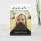 Elegant script announces your graduate over your favourite senior photo on the front. Block for their name on the front, and all the ceremony details inside along with another photo. Back includes space to relay their future plans or include a thank you message. Design available in school colours of red, orange, purple, green, blue, burnt orange, maroon, and black. Matching products available.