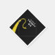 Creative graduation party napkins for class of 25 grads featuring funny line and classic graduation cap with gold tassel on black background.